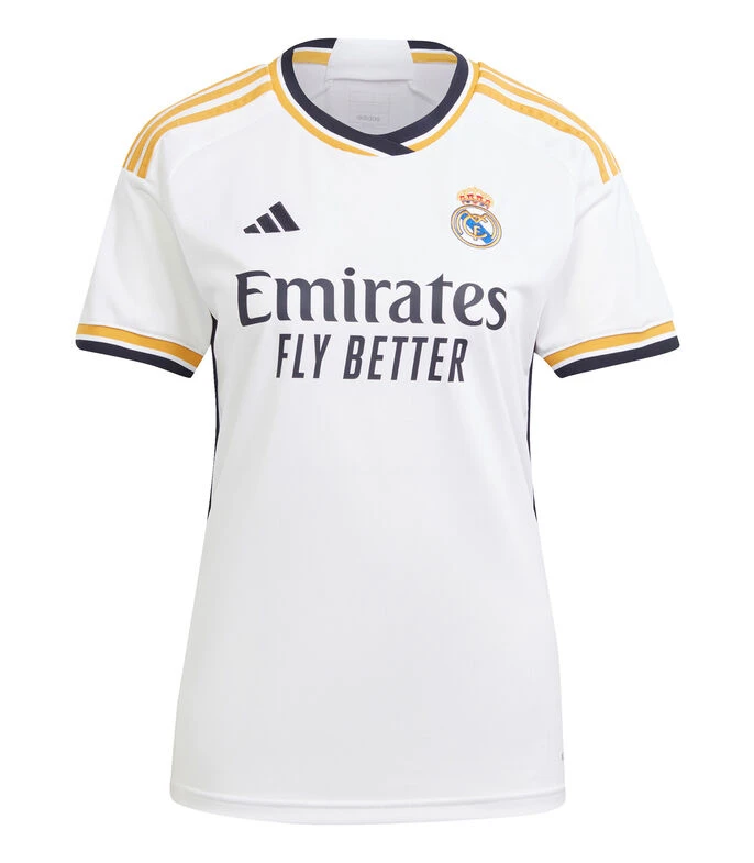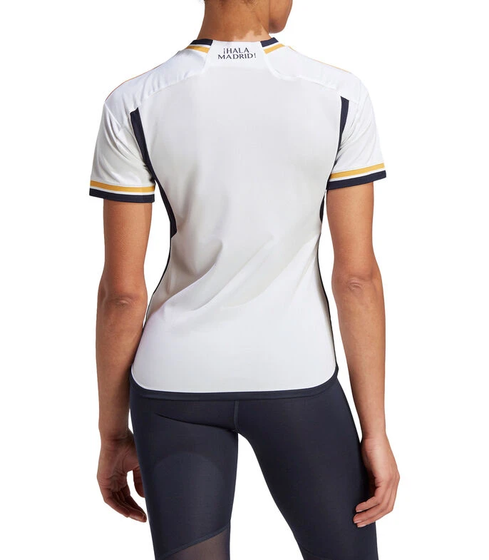 Jersey Adidas de corte slim en tejido de punto; con diseño del Real Madrid, cuello redondo, manga corta, franjas en hombros, escudo del club y patrocinador. Para la mayoría de los equipos de fútbol, ganar lo es todo. Para este equipo, la victoria es solo un pequeño paso hacia un objetivo aún mayor. Al igual que a la institución a la que representa, esta prenda del Real Madrid es sinónimo de elegancia.