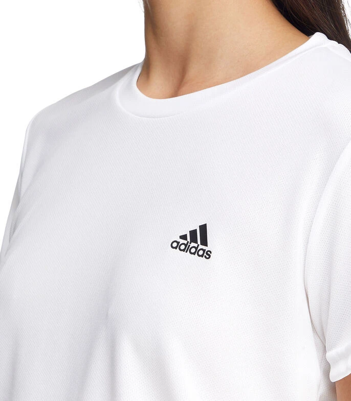 Playera para entrenamiento Adidas Aeroready, de corte recto en tejido de punto, cuello redondo, manga corta y estampado de la marca en pecho a contraste.