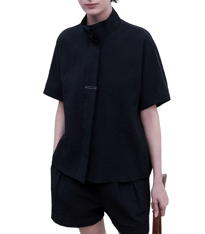 Camisa Adolfo Dominguez de corte regular en tejido de punto con textura, costuras a contraste, cierre de botones oculto bajo solapa.