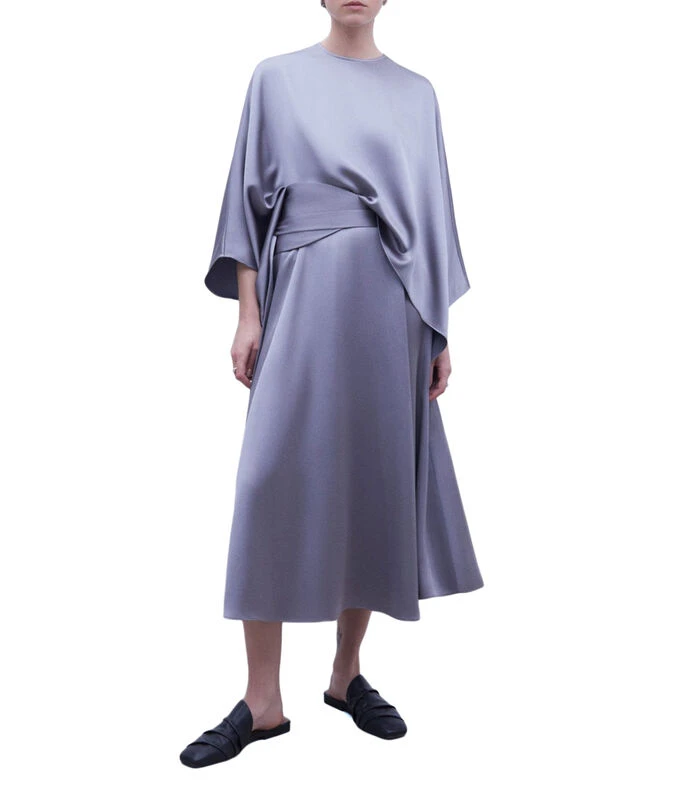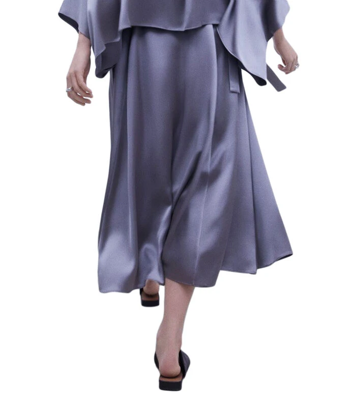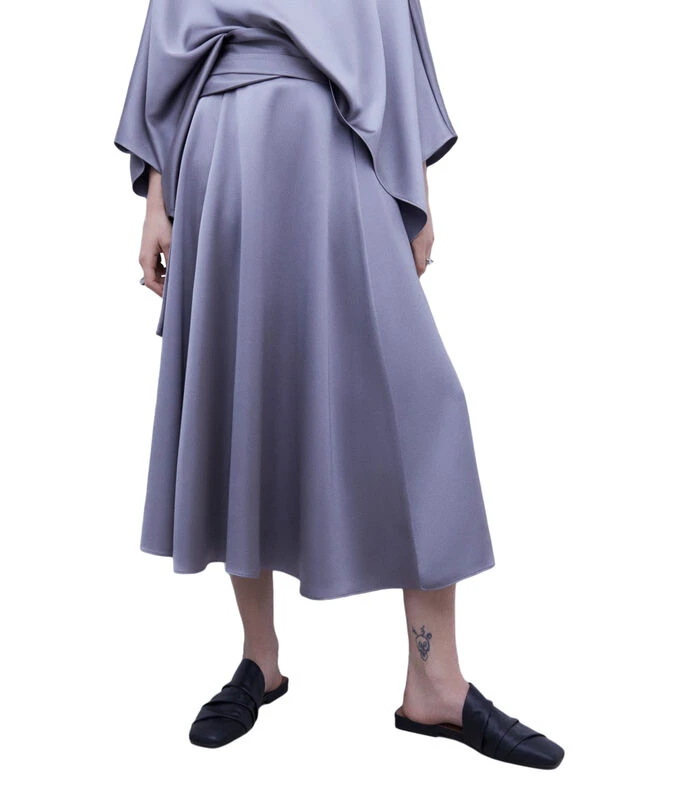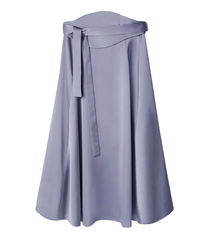Falda midi Adolfo Dominguez de corte «A» en tejido plano, detalle de cinta de ajuste a la cintura.