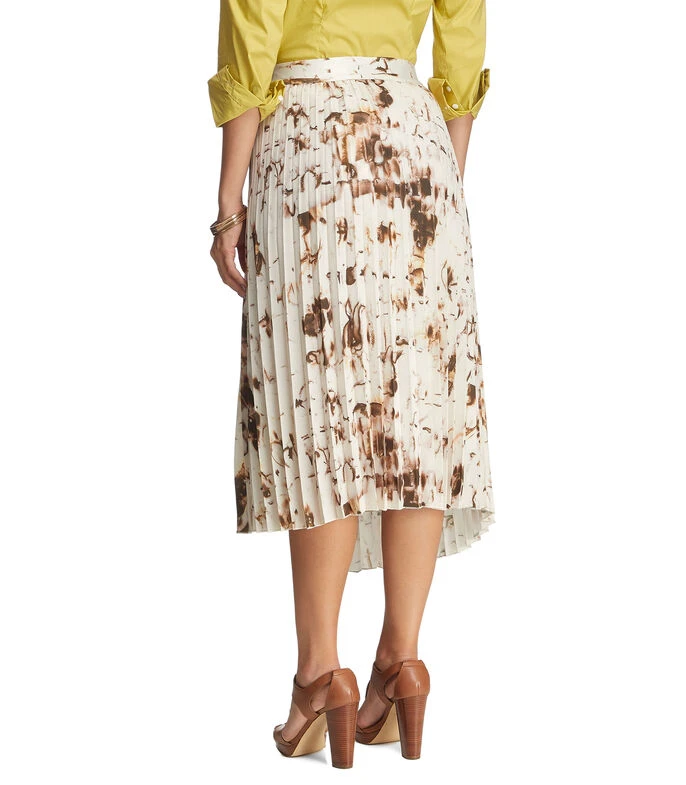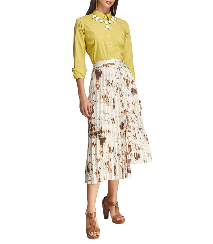 Falda Midi Adolfo Dominguez de corte A en tejido de punto plisado, pretina elástica, diseño a contraste y fondo a tono.