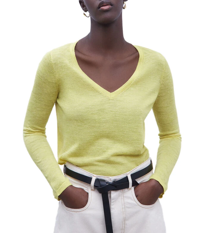 Jersey Adolfo Dominguez de corte regular en tejido de punto con acabado jaspeado, cuello «V» y manga larga con puños acanalados.