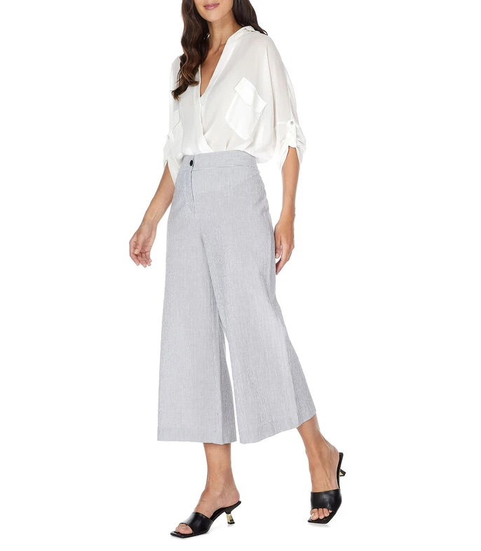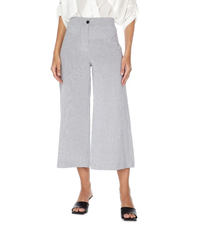 Pantalón Adolfo Dominguez estilo capri de corte recto con diseño de rayas, bragueta de cierre y bolsillos traseros.