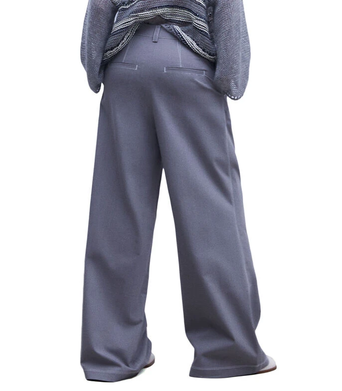 Pantalón Adolfo Dominguez de corte oversized en tejido de punto liso con tiro alto, pinzas al frente y bolsillos.