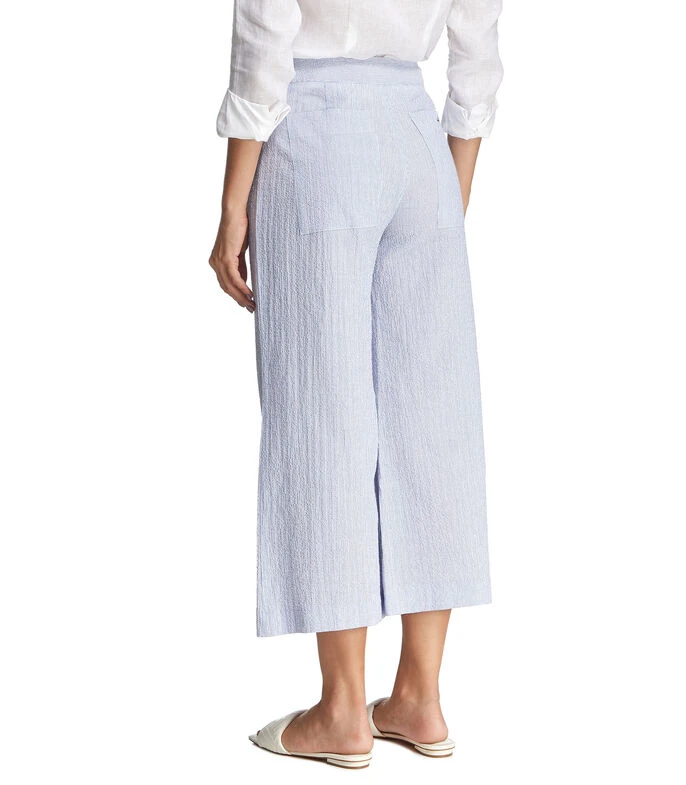 Pantalón Adolfo Dominguez Pata de elefante en tejido de punto, botonadura a contraste, bragueta de cierre y bolsillos posteriores.