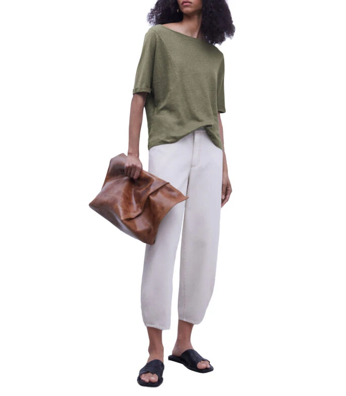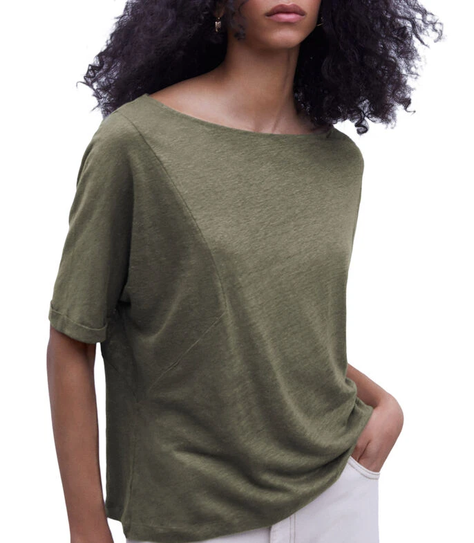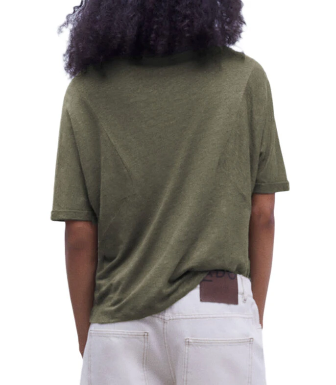 Playera Adolfo Dominguez de corte regular en tejido de punto con diseño jaspeado, cuello ojal y líneas a tono.