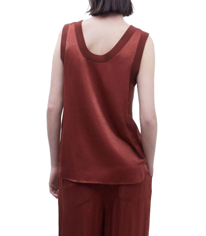 Playera Adolfo Dominguez de corte regular en tejido de punto con acabado tipo terciopelo, cuello redondo, sin mangas y terminaciones acanaladas.