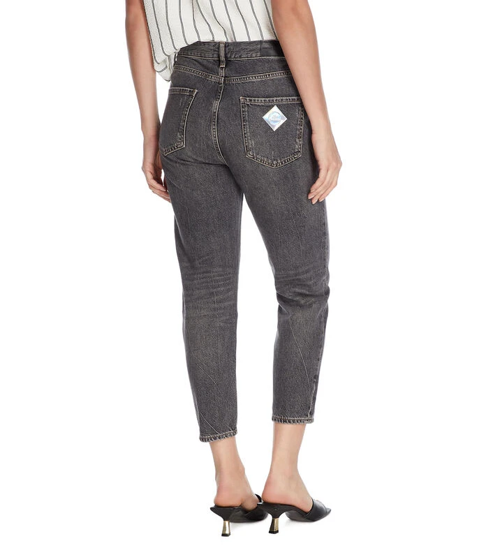 Jeans Armani Exchange de corte boyfriend crop en acabado teñido grisáceo con sutil deslavado, detalles desgastados, pespuntes a contraste y bolsillos.