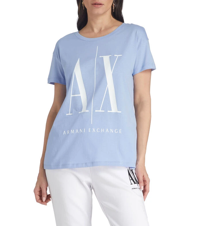 Playera Armani Exchange Icon Period de corte regular en tejido de punto, cuello redondo, manga corta, estampado en pecho a contraste y bordes acanalados.