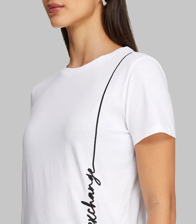 Playera Armani Exchange de corte recto en tejido de punto, cuello redondo sutilmente acanalado, manga corta y bordado lateral a contraste.