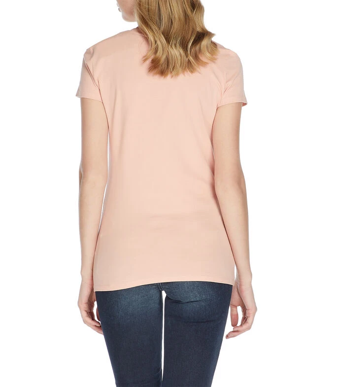 Playera Armani Exchange de corte regular en tejido de punto con aplicación de pedrería a contraste, cuello V y manga corta.