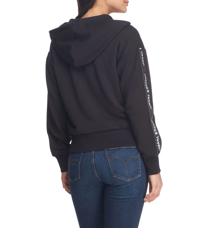 Sudadera Armani Exchange de corte regular en tejido de punto, cuello alto con capucha, manga larga, cierre completo, bordado de la marca en pecho con efecto iridiscente y bolsillos en costados.