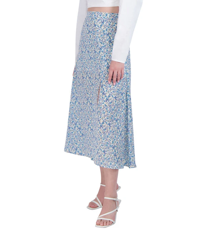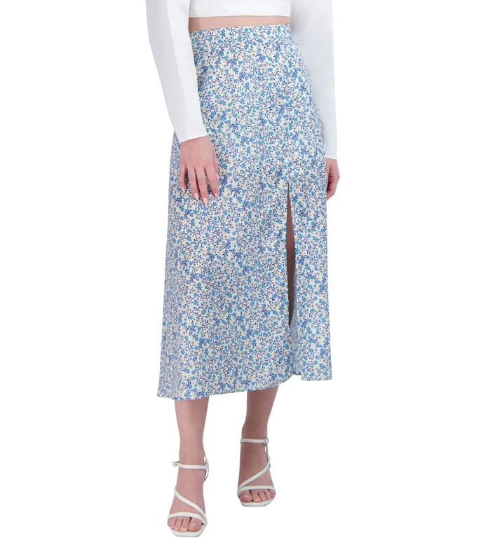 Falda BCBGeneration larga de corte regular en tejido de punto con diseño de plantas en mosaico a contraste y abertura decorativa en borde inferior.