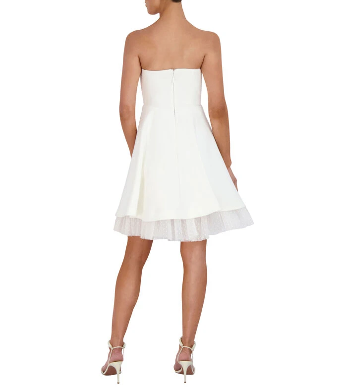Vestido mini BCBGMAXAZRIA de noche en corte «A» con tejido de punto liso, escote strapless, tirantes ajustables y cierre sobre espalda.