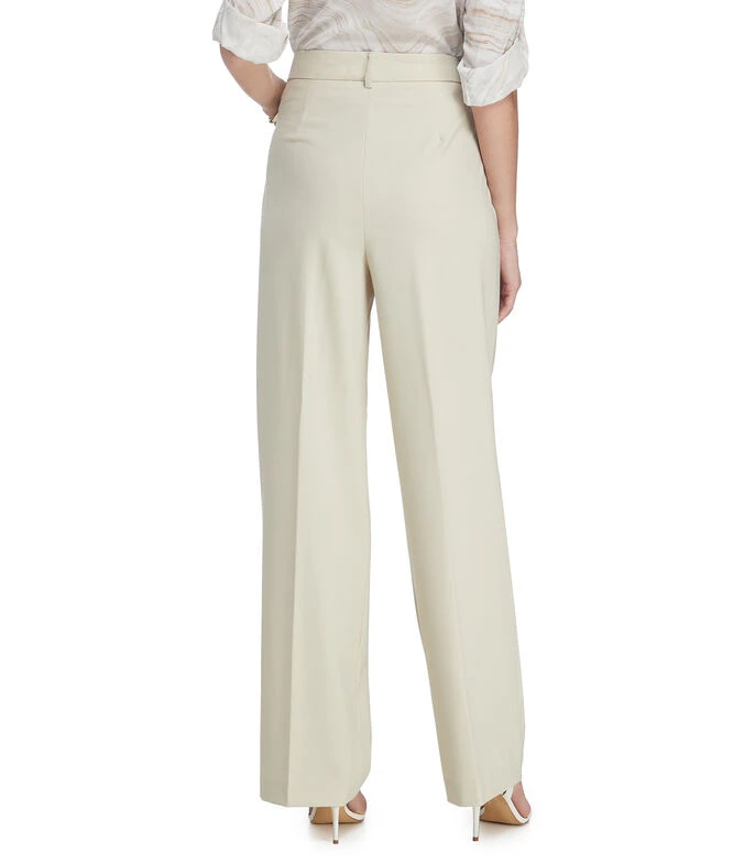 Pantalón de vestir Calvin Klein de corte recto en tejido plano, acabado liso, detalle de líneas de quiebre, trabillas para cinturón y bolsillos funcionales en los costados.