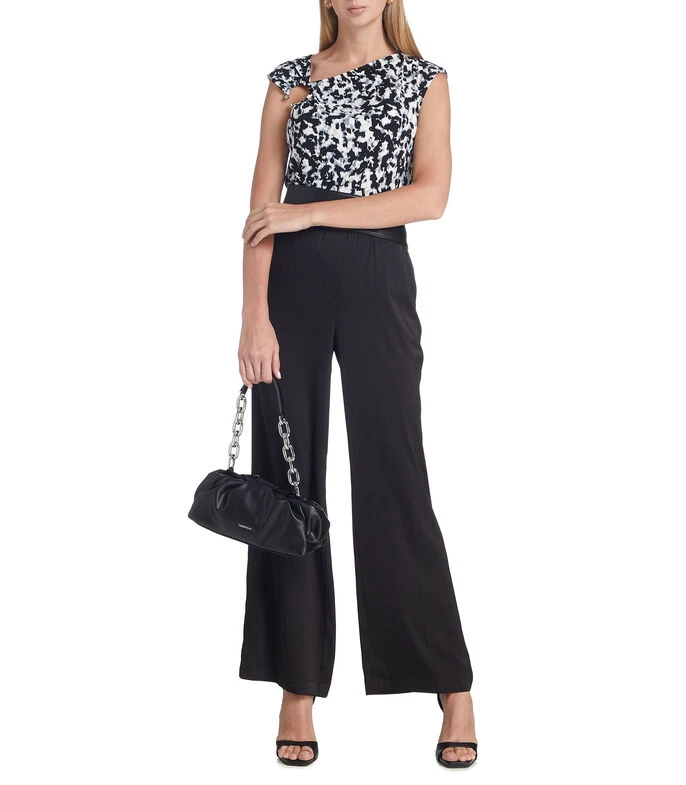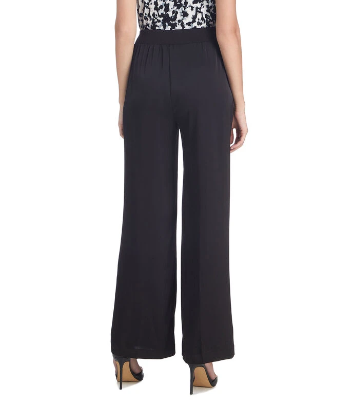 Pantalón Calvin Klein de corte recto tipo palazzo en tejido plano, diseño sólido, pretina elástica y bolsillos en costados.