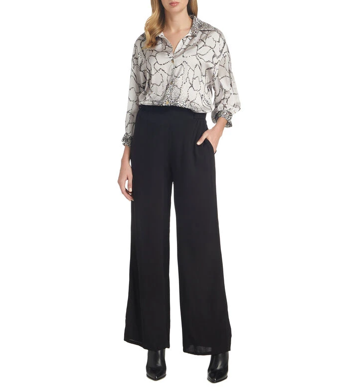 Camisa Spirito de corte regular en tejido de punto satinado con diseño a contraste, cuello italiano, manga 7/8 y botonadura a contraste.