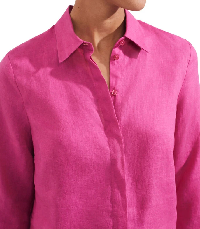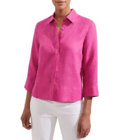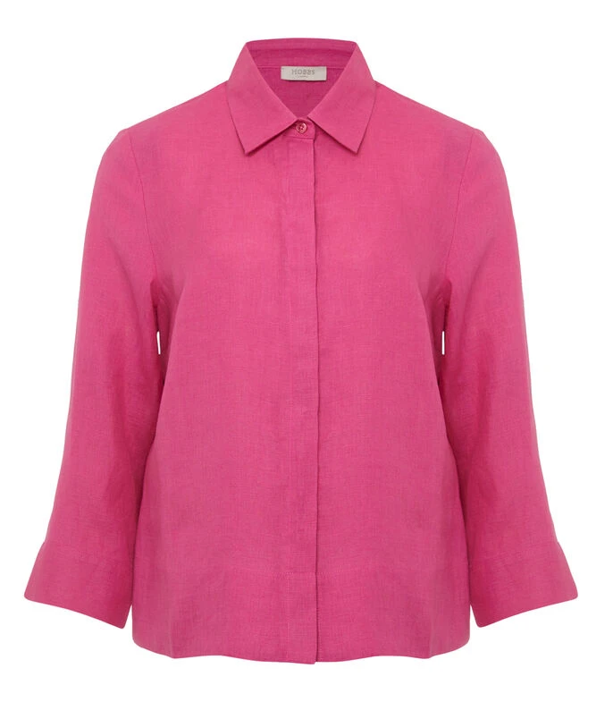 Camisa Hobbs de corte regular en tejido de punto, cuello camisero, botonadura oculta a tono y manga 3/4.