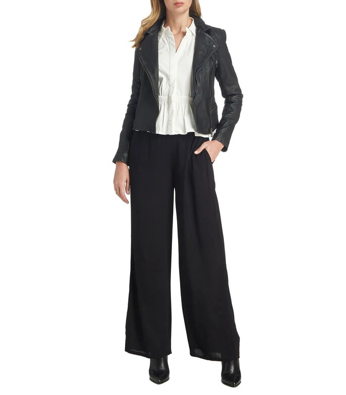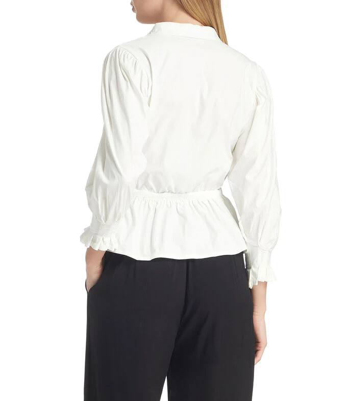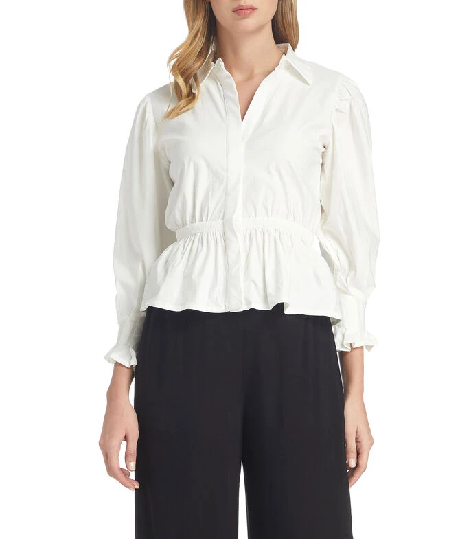 Camisa Spirito de corte regular en tejido de punto, cuello camisero, manga 7/8, botonadura al frente, elástico en cintura y detalles plisados en puños.