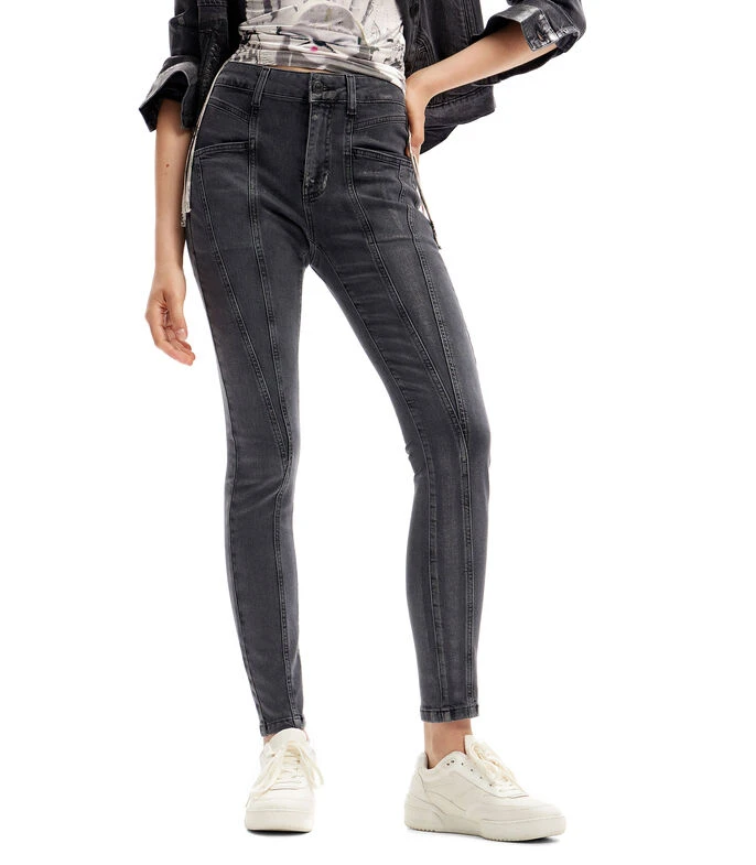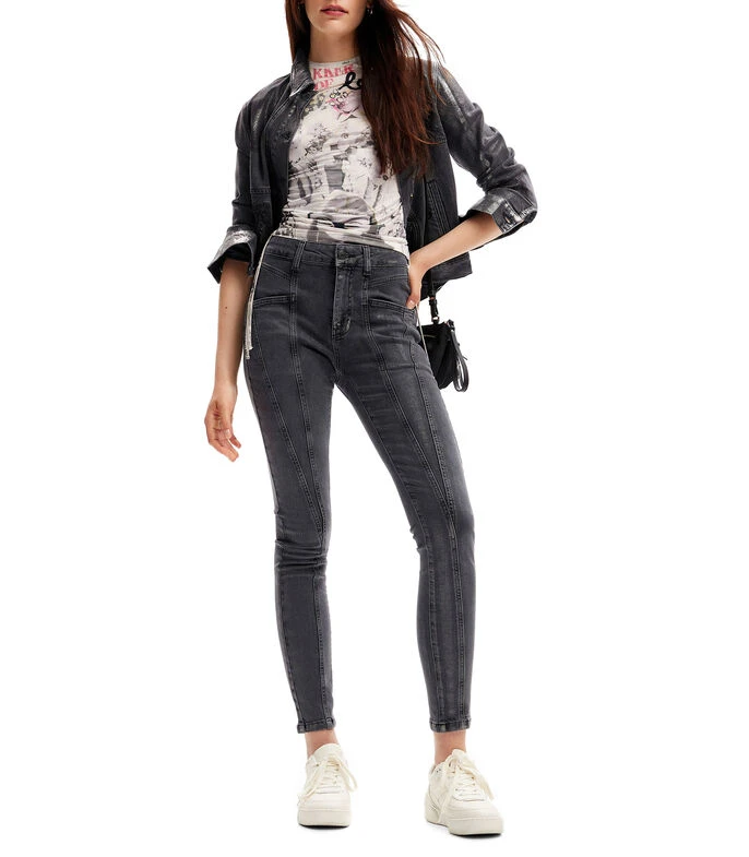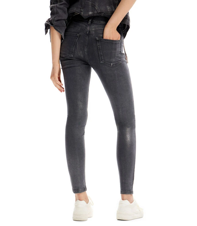 Jeans Desigual New Jersey de corte skinny con costuras centrales, efecto push up, estampado brilloso tipo metalizado, botón y cierre de cremallera.