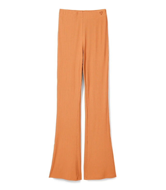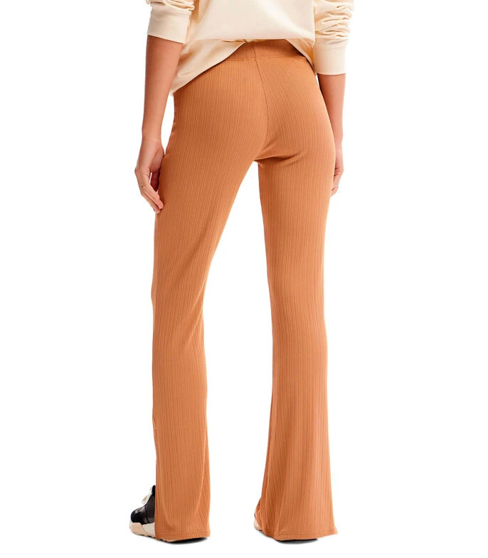 Pantalón Desigual Trapy; Es un pantalón largo de corte ajustado en tejido elástico con textura acanalada, tiro alto y bajo ligeramente acampanado.