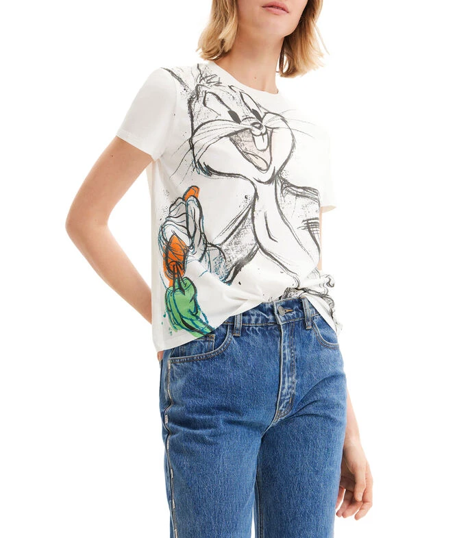 Playera Desigual de corte regular en tejido de punto con estampado de Bugs Bunny, cuello redondo y manga corta.