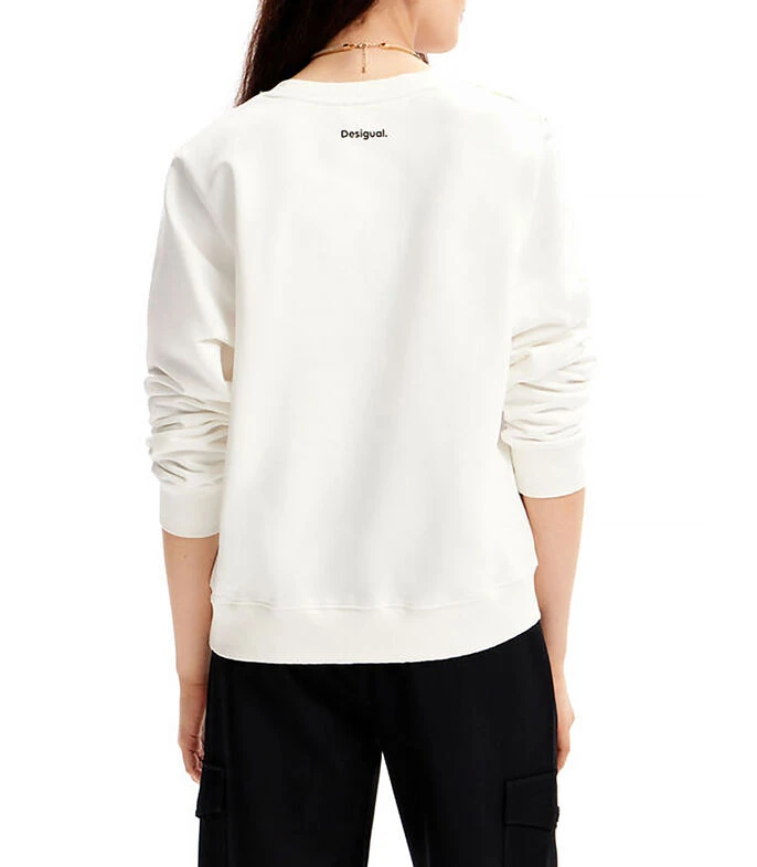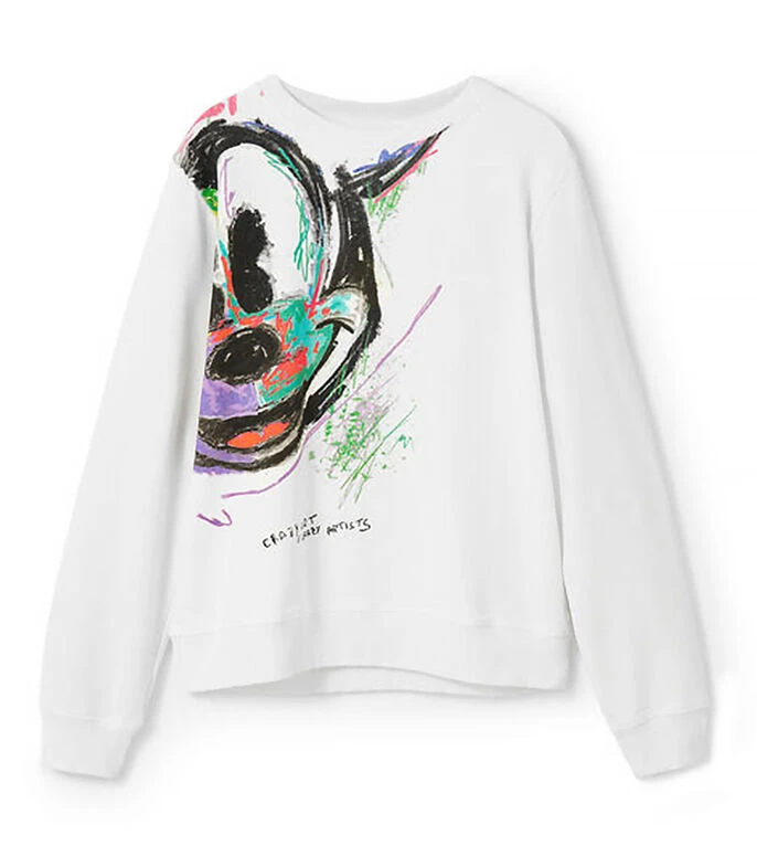 Sudadera Desigual Mickey Arty; Sudadera de cuello redondo y estampado frontal multicolor de Mickey Mouse, el icónico personaje Disney.