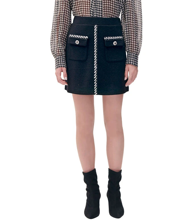 Una prenda coqueta y moderna que realza la feminidad de cualquier mujer. Su diseño ajustado y los ribetes añaden un toque de sofisticación. Puede ser combinada con una blusa de seda y tacones altos para un look elegante y chic. Los accesorios en tonos neutros complementan perfectamente esta falda. Ya sea para una ocasión especial o una salida nocturna, esta falda es una elección acertada para lucir elegante y cautivadora.