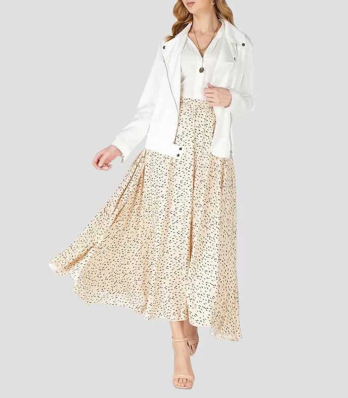Falda larga Octavia de corte evasé en tejido de punto con estampado a contraste y pretina elástica.