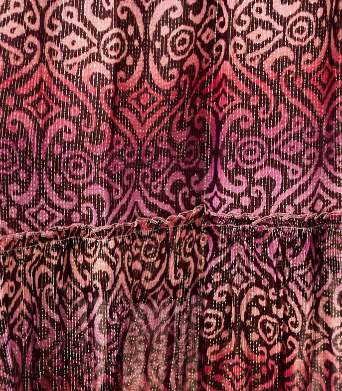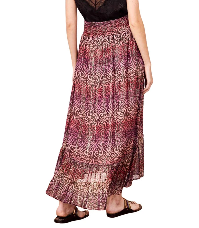 Falda Midi Rapsodia de corte «A» en tejido de punto con estampado fantasía, pretina elástica e inserción de hilo metalizado. Una prenda relajada y despreocupada, ideal para outfits de verano.