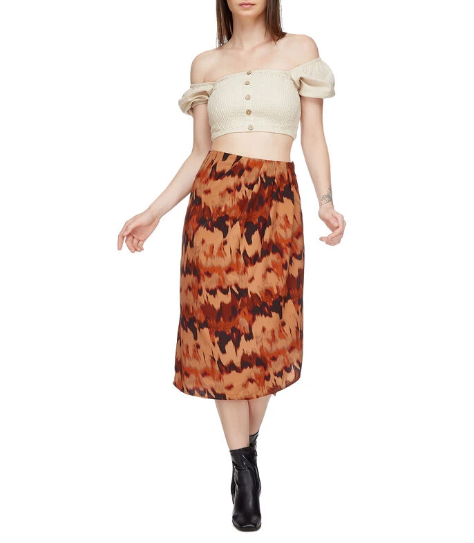 Falda midi Epsilon de corte recto en tejido de punto, diseño tipo animal print y pretina elástica.