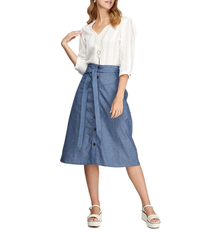 Falda midi Pertegaz de corte regular en tejido de punto con diseño liso, botonadura frontal a contraste, cinturón y bolsillos a los costados.