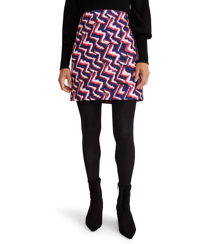Falda Mini Phase Eight Dorothy, de corte «A» en tejido de punto con estampado de zigzag multicolor, cierre posterior. Un estampado divertido para tu guardarropa. Diseñado en un estampado abstracto y colorido, nuestra mini falda tiene una línea «A». Fácil de combinar con blusas neutrales para un look casual-formal.