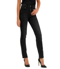 Jeans Guess de corte Skinny con trabillas para cinturón, cierre de cremallera con botón metalizado y placa con logotipo de la marca en parte trasera.