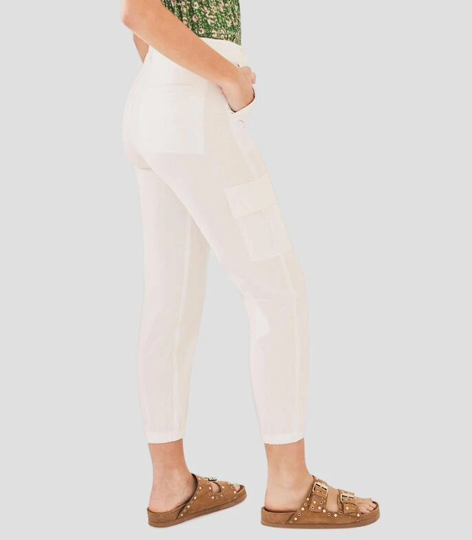 Jeans Rapsodia tipo cargo de corte Slim, trabillas, botonadura y pespuntes a tono, bragueta de cierre, 6 bolsillos y elástico en parte inferior.