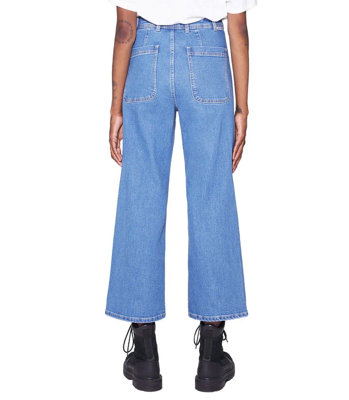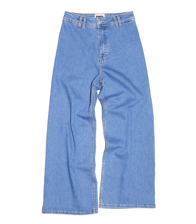 Jeans culotte Bimba y Lola acampanado con tiro alto y bolsillos posteriores. Cierre con cremallera y trabilla para el cinturón.