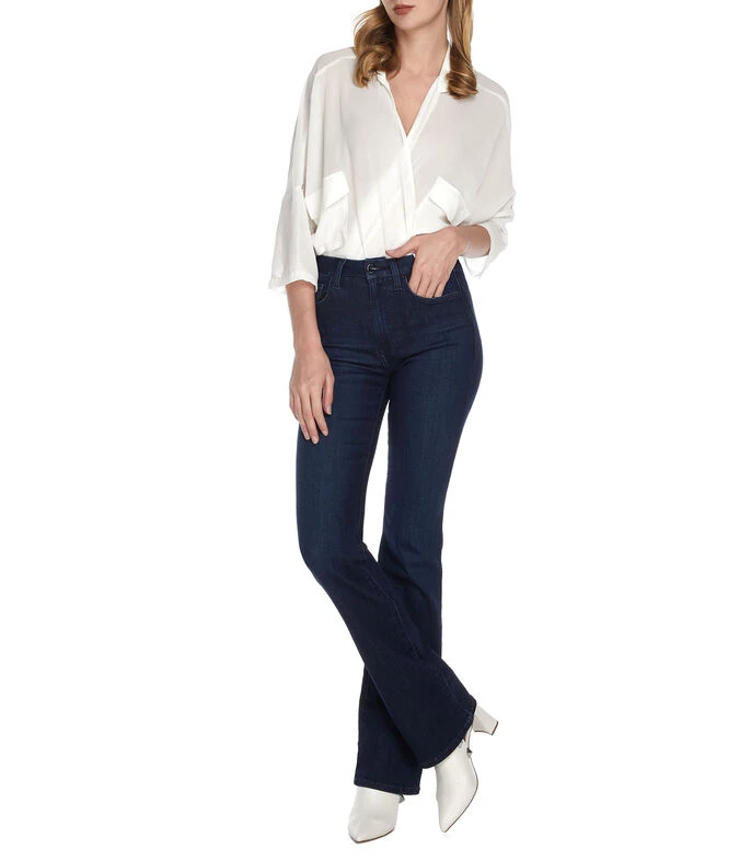 Jeans Joe’s de corte bootcut en acabado teñido con cintura alta, bragueta de cierre y bolsillos.