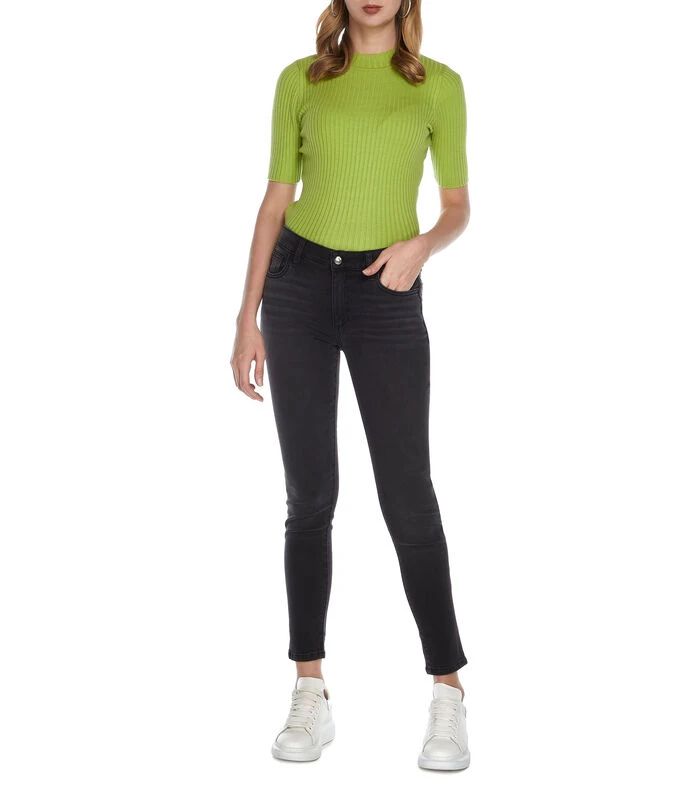 Jeans Joe’s de corte Skinny en acabado teñido con sutil deslavado, bragueta de cierre, pespuntes a tono y bolsillos.