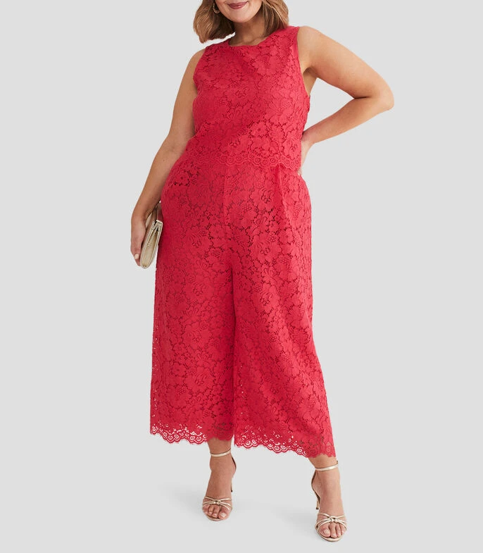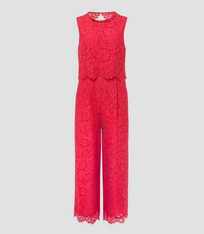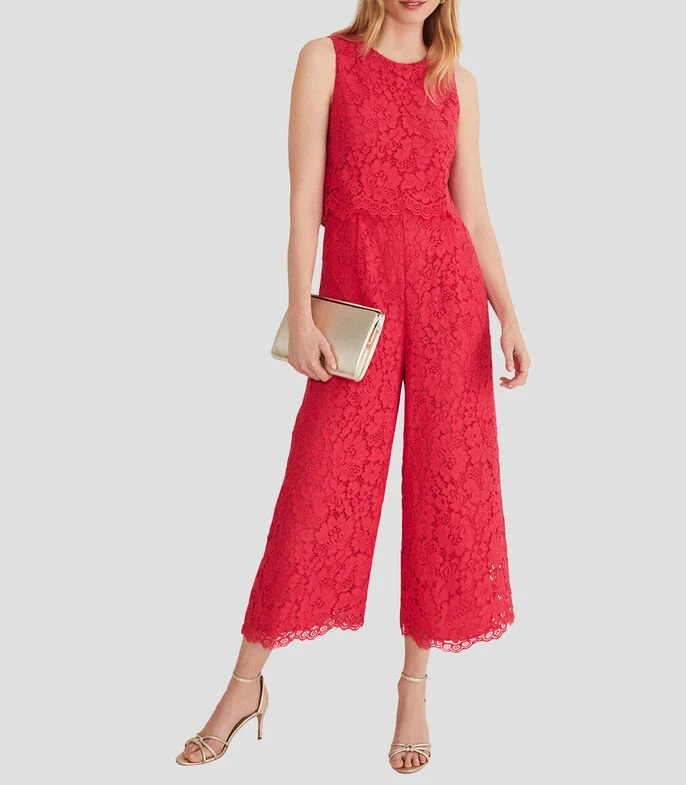 Jumpsuit Phase Eight de corte cropped en tejido de punto, cuello redondo, sin mangas, botonadura en la nuca y escote con diseño tipo crochet.