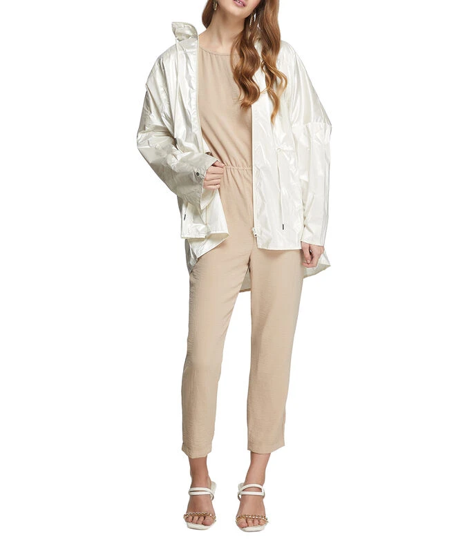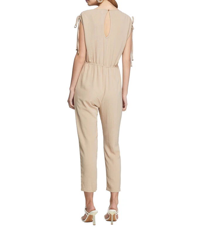 Jumpsuit Tattoo de corte recto en tejido de punto, diseño sólido, cuello oval, hombros anchos con cintas de ajuste, elástico en cintura y bolsillos en costados.