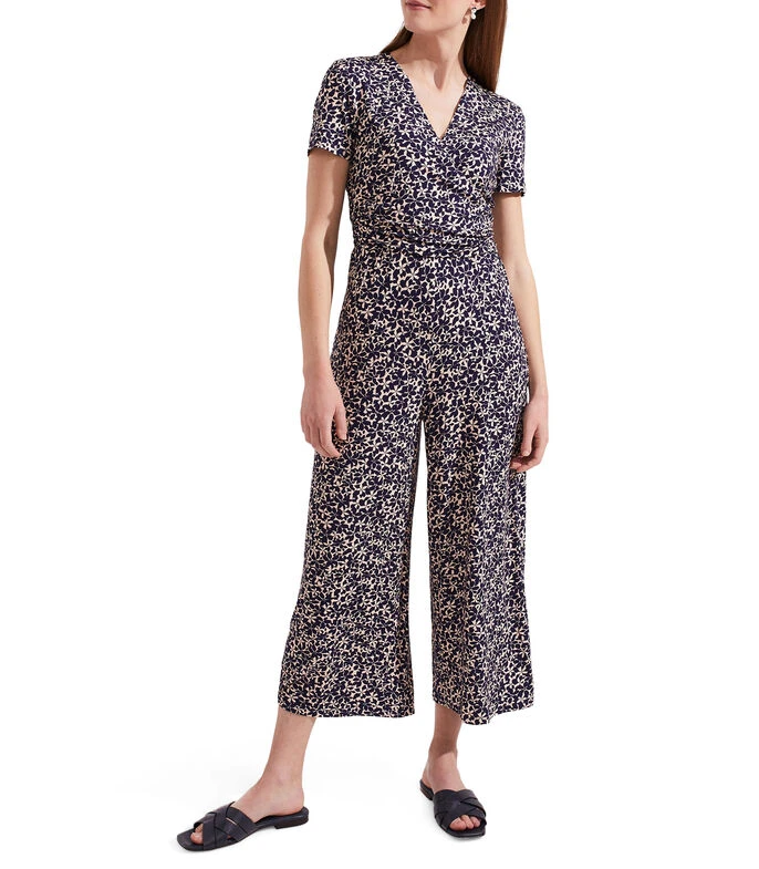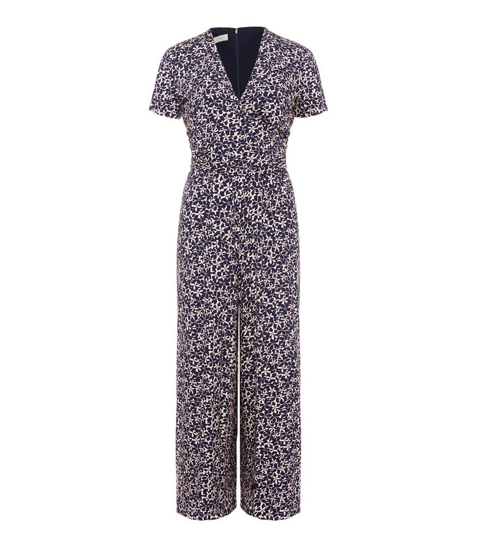 Jumpsuit Hobbs Dina de corte Wideleg en tejido de punto con flores, cuello V y manga corta; Anclado en una contemporánea paleta de colores, el precioso jumpsuit Dina te llevará del trabajo al fin de semana sin esfuerzo.