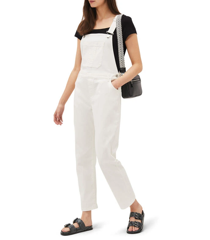 Jumpsuit Phase Eight Khari Dungaree, de corte recto en mezclilla, cuello cuadrado sin mangas, tirantes regulables, botonadura metálica y bolsillos en costados. Un estilo contemporáneo para agregar a tu guardarropa. Combinará perfectamente con todas tus playeras, blusas y jerseys.