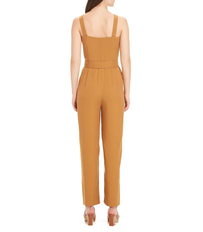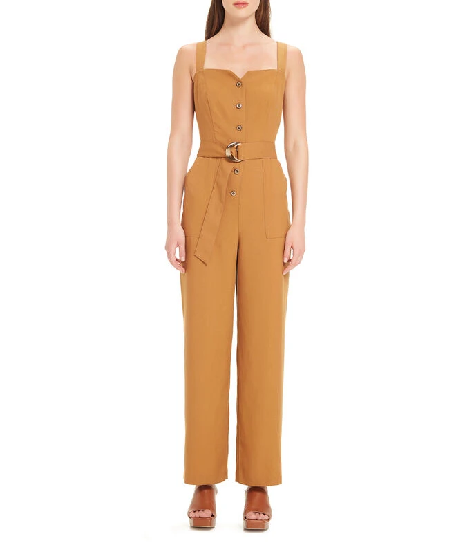 Jumpsuit Julio de corte recto en tejido de punto; Jumpsuit escote cuadrado con botones combinados al frente. Tirantes ajustables. Bolsillos laterales de parche. Cinturón de tela con hebilla combinada de metal y efecto carey. Largo del interior de la pierna: 74 cm. Piqué fluido.