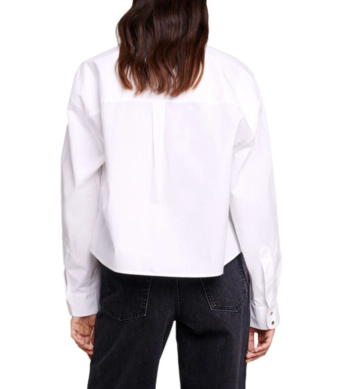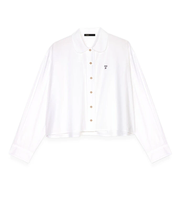 Camisa Maje de corte recto; en tejido de punto liso con cuello italiano, botonadura a contraste, logotipo bordado a la altura del pecho, manga larga y puño doble.