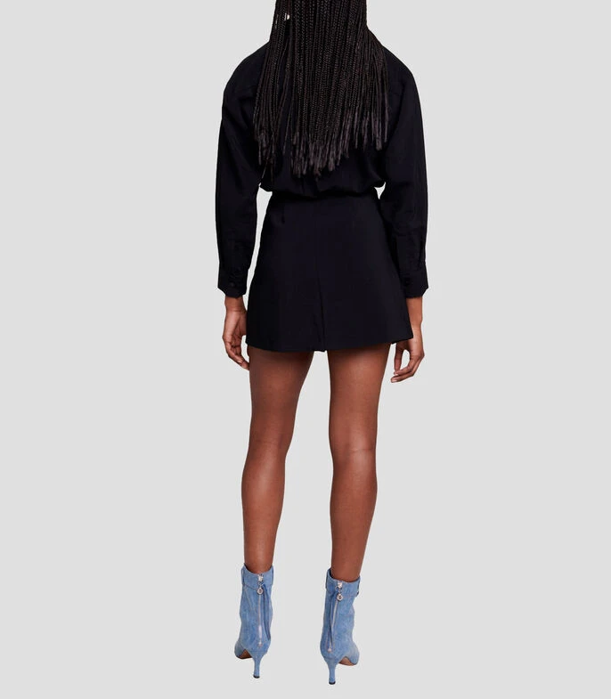 Jumper Maje Ilanie de corte recto en tejido de punto; Ideal para tus atuendos de oficina o de noche, este jumper de corte recto juega con las proporciones y combina la comodidad con la elegancia. De cuello camisero, cierre de cremallera y botón, escote cruzado abotonado y manga larga terminada en puños abotonados. Su sección de falda recta con paneles abiertos crea una silueta seductora perfectamente ajustada.