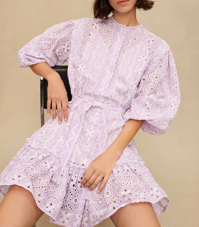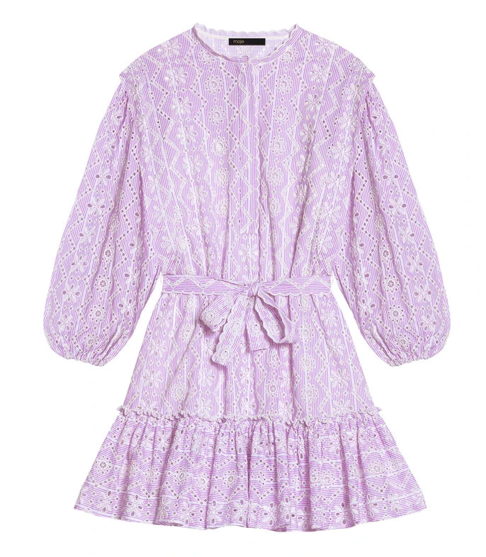 Vestido Maje midi de corte recto en tejido de punto, cuello redondo, manga 3/4 elásticas, microdiseños y cinta ajustable. Una prenda perfecta para los días calurosos.