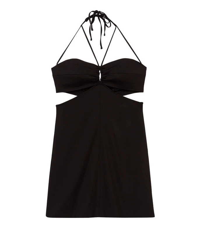 Vestido mini Maje de corte ajustado en tejido de punto con tiras en cuello, abertura en costados y cremallera en espalda.