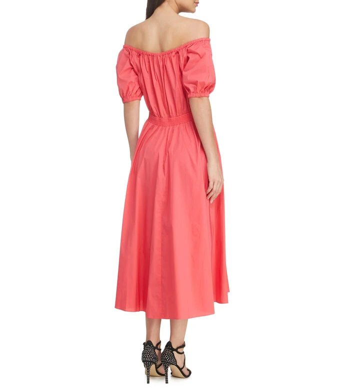Vestido Michael Kors Midi, de corte A en tejido de punto, cuello redondo, manga corta, elástico en cintura y bolsillos en costados.