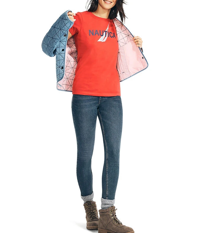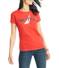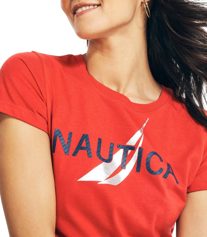 Playera Nautica de corte regular en tejido de punto, cuello redondo, manga corta, estampado de la marca con relieve y a contraste.