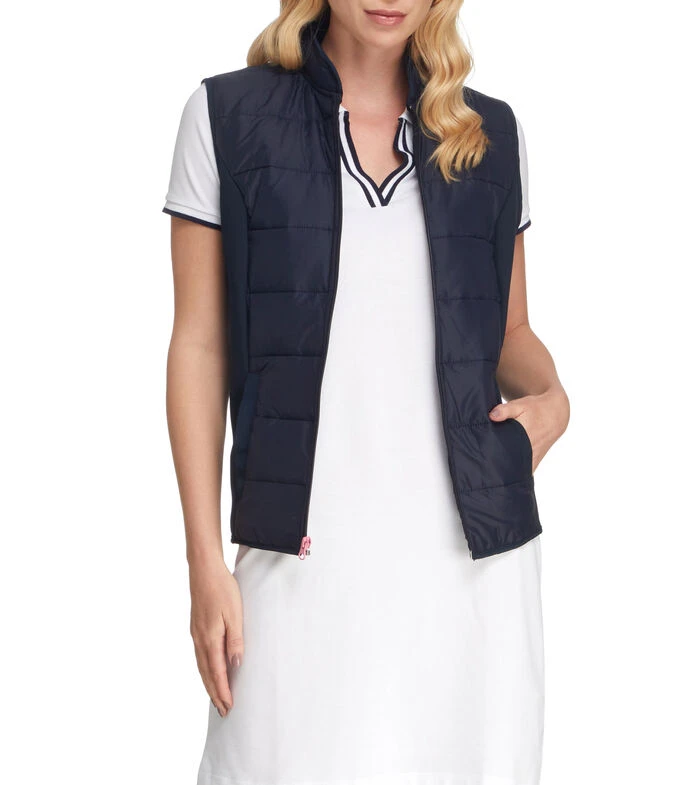 Vestido tipo Polo Nautica Mini, de corte recto en tejido piqué, cuello con media abertura, manga corta y bordes acanalados.